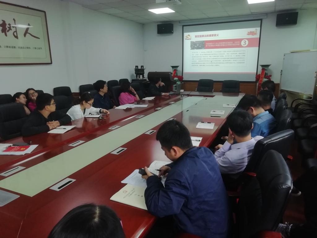 学习会上,学院党委书记杨克非同大家一起回顾五四运功的时代背景,分析了五四精神的时代意义;强调了党员政治学习的重要性,要严守纪律、不触碰红线,对2018版的监察法进行了简要解读。最后,中心组成员就5月的支部主题党日活动安排进行了讨论。
