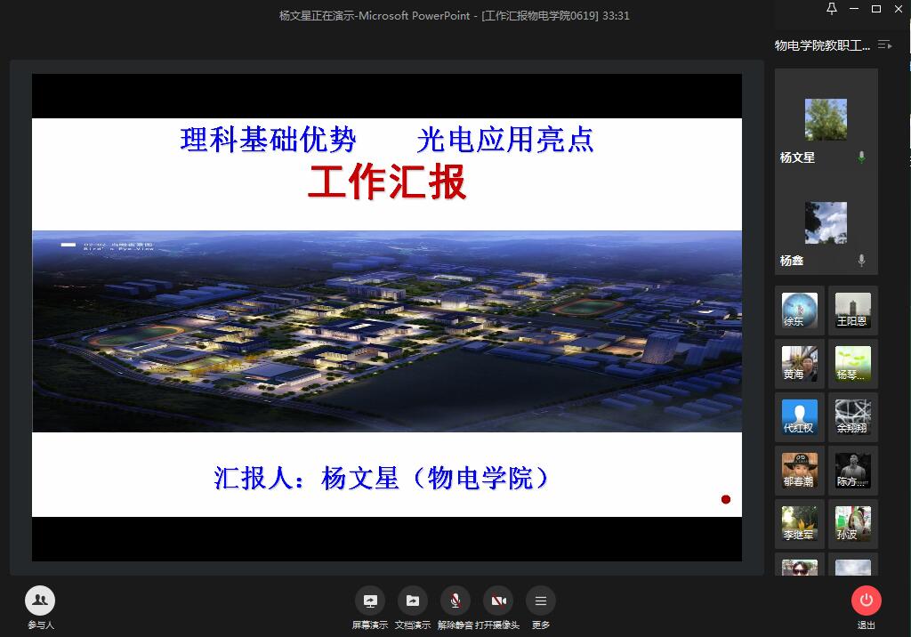 6月18日下午,学院利用企业微信网络平台召开了6月分党委中心组理论学习会议暨全院教职工大会。会议由分党委书记杨鑫主持。