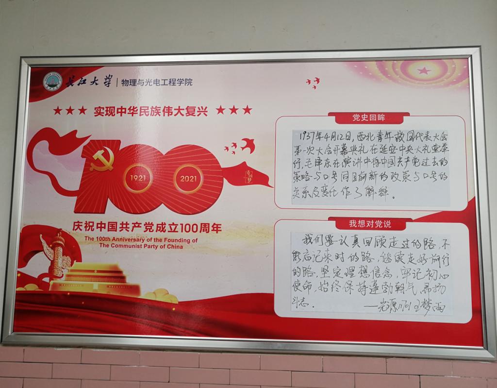 纸上得来终觉浅,绝知此事要躬行,顶级在线体育平台学生党支部在11栋学生宿舍2楼党史学习教育宣传栏展开动手学习党史,学员通过《党史回眸》栏目,每天摘抄党史以及通过《我想对党说》栏目,表达对党的热爱之情。