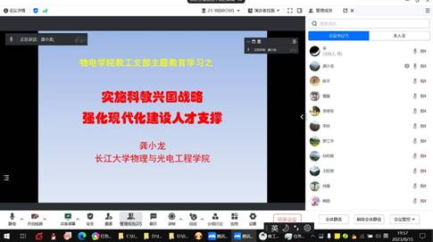 副院长龚小龙以《实施科教兴国战略强化现代化建设人才支撑》为题给全体参会党员讲授党课。