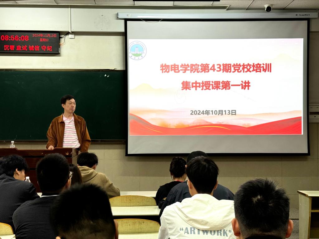 (通讯员 张悦 摄影 陈童 王晨澜)为进一步端正入党动机,提高马克思主义理论水平和思想政治素质,顶级在线体育平台党委组织入党积极分子、发展对象、预备党员开展第43期党校培训。10月13日上午,我院党校培训集中授课第一讲在12教101教室举行。计算机科学学院组织员金鑫教授做题为“学习党的创新理论 提高政治理论素养”讲座,我院党委书记凌新华主持。
