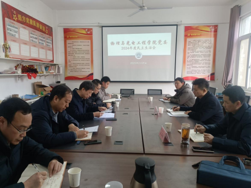 2月21日上午,物理与光电工程学院在10教310室召开2024年度党委领导班子民主生活会。校党委常委、组织部部长李应军,校纪委委员、采招处处长王学峰,党委组织部科长孟鑫到会指导。会议由院党委书记凌新华主持,全体党委领导班子成员参加会议,民主党派成员张华峰院长列席会议。