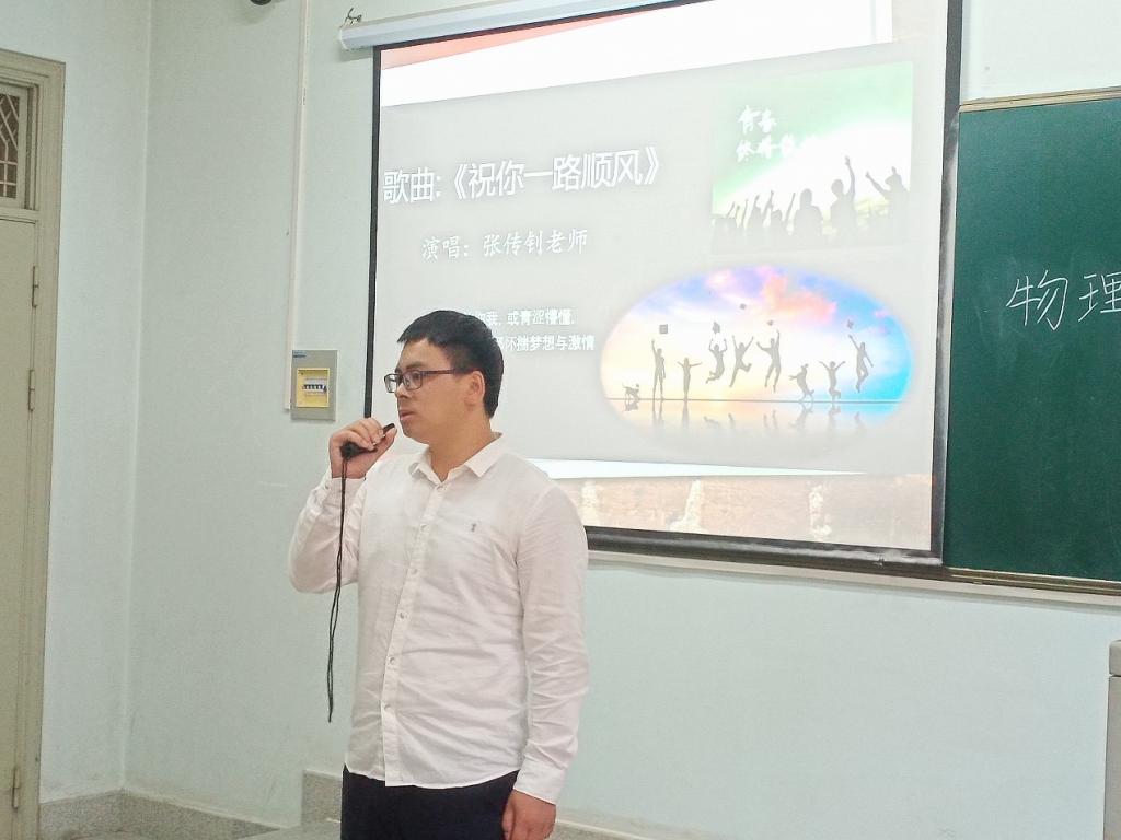 随后,同学们在张传钊老师的带领下,我们载歌载舞,歌颂未来,歌颂朝阳,歌颂希望,更是歌颂我们自己,歌颂每一位教导过我们的老师,没有老师们的辛勤耕耘,也没有今天的硕果累累。