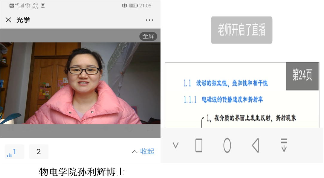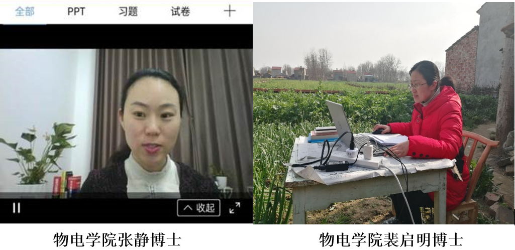 在既没有网络,也没有教学资料的情况下,被隔离在农村老家的裴启明老师积极投入到了紧张的教学工作中。因为地处偏远,4G信号差,裴老师将桌子搬到了老家的菜园较空旷的地方摸索网上教学平台“雨课堂”。本学期裴老师讲授大三年级学生的《热力学与统计物理》,大多学生正在进行考研准备。在课堂上裴老师加入一些数学知识的讲解,帮助同学们复习相关内容,并督促他们趁此机会,在家认真补上自己所欠缺的知识。战“疫”特殊时期,战“疫”和防控就是最大的思政,裴老师通过“雨课堂”积极融入战“疫”,让学生明白现在安心宅家学习,不给全社会防控抗疫增加负担,将来考上研究生学好本领,还能给社会做更多更大的贡献。裴老师还担任了物理学16级两个班的班主任。裴老师每天在班级群了解学生动态,并及时通过雨课堂和腾讯会议的方式给同学们开主题班会,让同学们认清当前的就业形势,明确当前的任务。班会上,通过给同学们布置 “国难当头,当代大学生应该有怎样的担当”的主题,让所有同学参与讨论。裴老师还通过线上问卷调查的方式,了解每一位同学当前的学习和就业困难。针对调查结果,裴老师电话落实每一位同学反馈的问题,力争做到一生一策,工作真正落实到位。