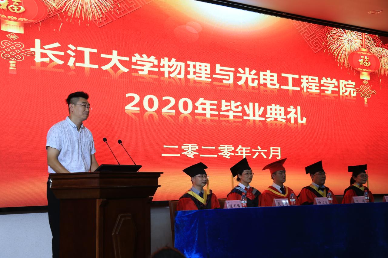 典礼上,学院院长、博士生导师杨文星教授为毕业生代表拨穗授学位。硕士研究生毕业生代表张凯凯和本科毕业生代表段晓辉先后发言,分享了自己在长江大学、在顶级在线体育平台的学习生活和成长经历,感恩学校的培养。教师代表、物理学专业毕业班班主任裴启明教授赞赏了同学们在新冠肺炎疫情期间所展现的社会责任与担当,教导同学们要学会奋斗、学会感恩、学会生活。