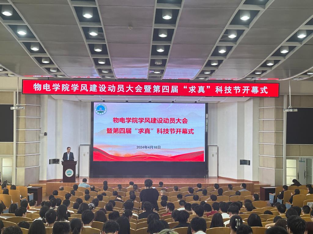 (通讯员:彭雨轩 摄影:石依郎 于晓阳 谈睿)为进一步增强我院学生的学习积极性,营造良好的学习氛围,助推学校“双一流”建设。4月18日下午,学院在12教405报告厅举行学风建设动员大会暨第四届“求真”科技节开幕式。学院全体教职工和大一至大三本科生参加本次大会,会议由学院党委副书记王宁主持。