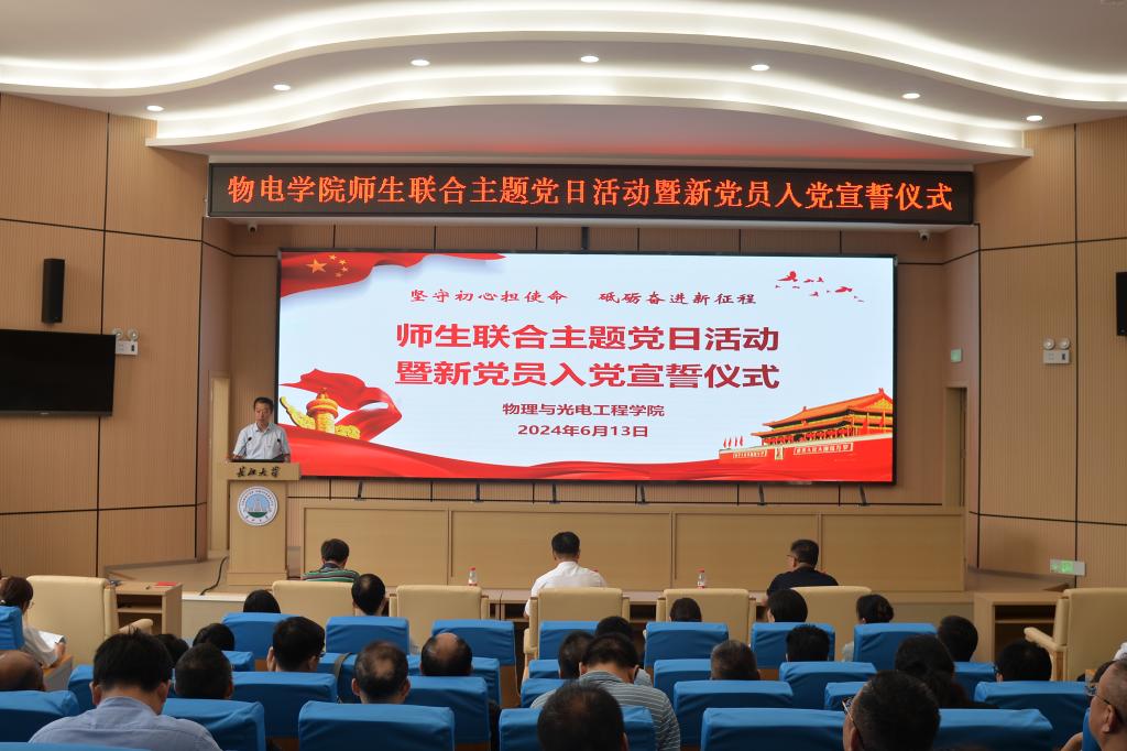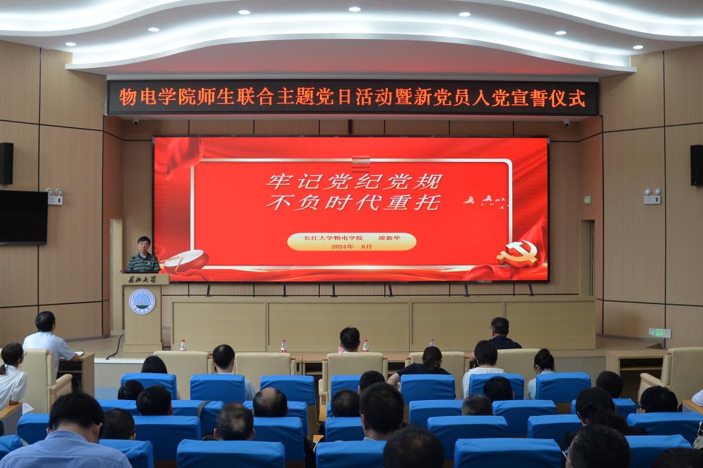 (通讯员 彭雨轩)为进一步深化党纪学习教育,增强纪律意识,提高党性修养,激发党员师生牢记初心使命、勇于开拓创新和敢于担当作为的精气神,6月13日,顶级在线体育平台在11教学术报告厅举行“坚守初心担使命,砥砺奋进新征程”师生联合主题党日活动暨新党员入党宣誓仪式。学校党委常委、党委组织部部长、党委统战部部长李应军、学院全体教职工党员、学生党员参加活动。