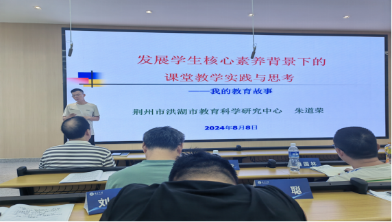 (通讯员 刘海燕) 8月8日下午14:30,来自荆州市洪湖市教育科学研究中心的朱道荣老师为参加2024年国培物理教师展开了一场主题为发展学生核心素养背景下的课堂教学实践与思考的主题讲座。他通过一段视屏——鸭妈妈的体育课,引入本次讲座的内容核心素养的培养。之后,朱老师举例K云体育官方入口速度引入教学环节,他直接让两位老师上讲台完成实验,将速度概念引入的十分形象和深刻。朱老师还提出教学过程要注意方法,情境教育很重要,注意循序渐进,尊重个体差异,让学生快乐学习,健康成长。他有趣又深刻的观点赢得了学员们的阵阵掌声。