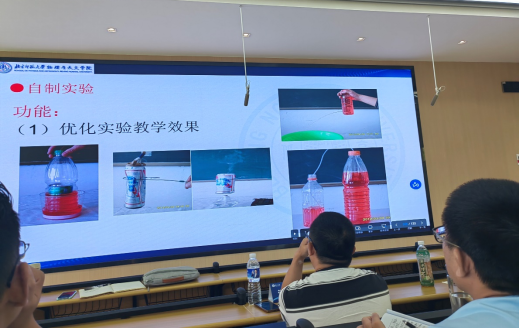 他还指出实验教学中要为失败的实验做准备,也就是要多专研、多思考,将实验过程中的各种可能出现突发状况做好预案。在典型案例分析环节,他将初中物理课程中的涉及的实验分类成9+12两大类型,分析了实验要求,指出实验教学旨在以实验为载体,问题为核心,推进学生思维深入递进。另外他还建议与会的学员们,平时要注意积累,生活中物质、现象都可以成为实验素材。他提出的实验事例均是平时老师们遇到的但尚未重视的问题,引起各位学员们的共鸣。