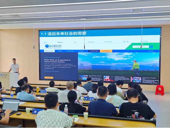 (通讯员 刘海燕)8月10日下午,我院邀请了湖北省教育科学研究院中学物理教研员苏航老师来我院讲学,苏航老师此次讲座的主题是《基于素养立意的教学设计》。他从初中物理新教材体系结构、编写意图及实施建议等方面详细阐述了核心素养的内涵。他指出,基于核心素养的教学设计既是顺应课程标准要求的需要,也是培养适应未来社会人才的需要,更是教育改革与发展的必然趋势。
