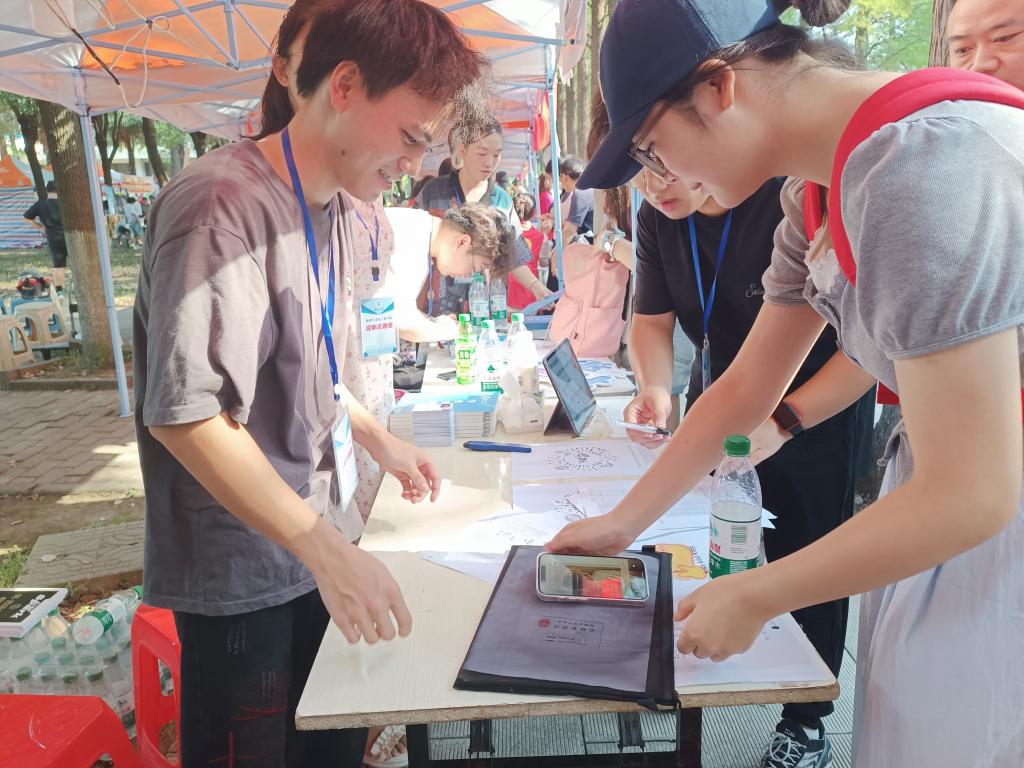 报到点处,志愿者们耐心地与家长沟通,引导新生进行报名登记、领取学生卡、录入校园人脸识别信息等入学手续。