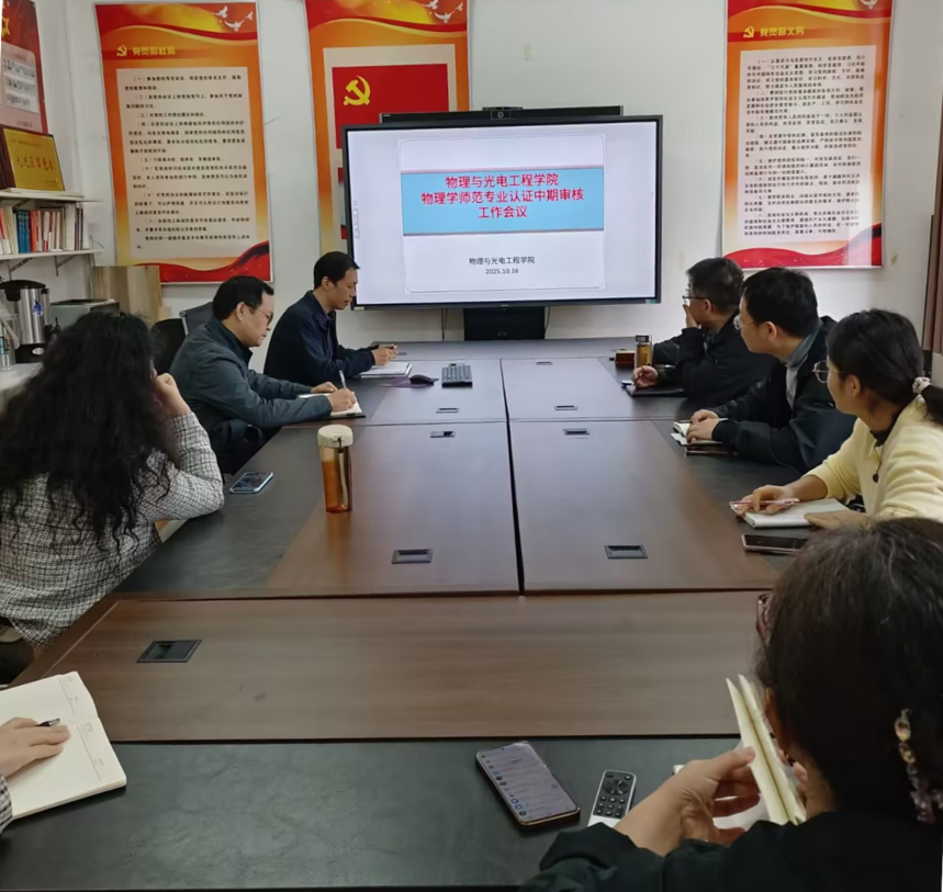 为扎实做好物理学师范专业第二级认证的状态保持工作,落实教育部和湖北省教育评估院的相关要求,我院于2025年10月17日上午在10教310会议室召开了物理学师范专业认证中期审核工作布置培训会。我院龚小龙副院长、物理学专业负责人、系主任及专任教师参加了会议。