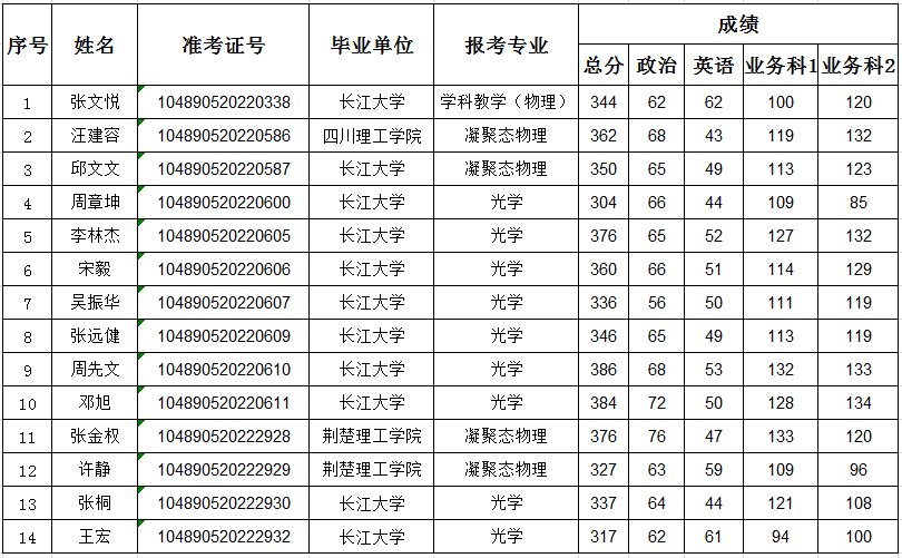 物理与光电工程学院2020年研究生招生一志愿复试名单