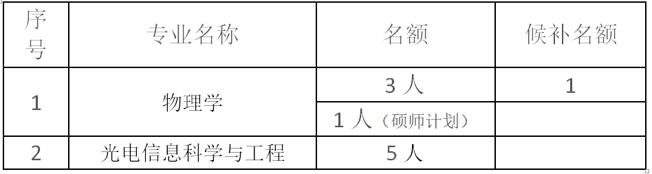 根据物理学、光电信息科学与工程两个专业的毕业生人数与普通计划数之比,按相同比例核定每个专业的推免人数。