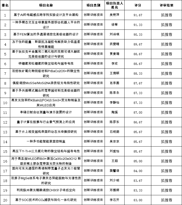 顶级在线体育平台第十八批“大学生创新创业训练计划”项目申报院内评审结果拟推荐公示(创新训练项目)