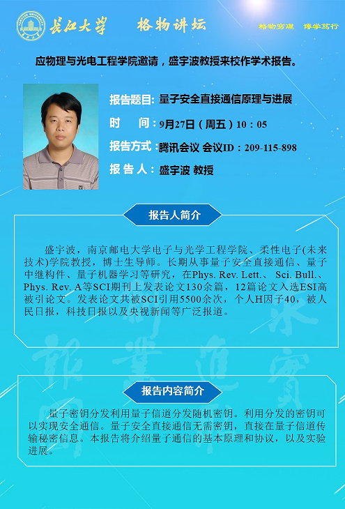 顶级在线体育平台2024年学术报告第十三讲——量子安全直接通信原理与进展