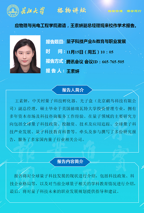 顶级在线体育平台2024年学术报告第二十二讲——量子科技产业&教育与职业发展