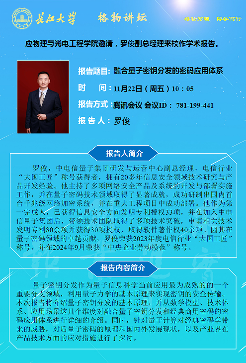 顶级在线体育平台2024年学术报告第二十四讲——融合量子密钥分发的密码应用体系