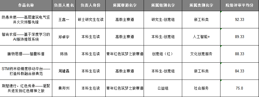 本次中国国际大学生创新大赛(2024),顶级在线体育平台共计报名100个项目,经评审学院推荐以下5个项目参加校赛,现予以公示,如有质疑请于6.30日前,联系姚老师,电话:07168060967,或在顶级在线体育平台创新创业群中QQ联系群主。