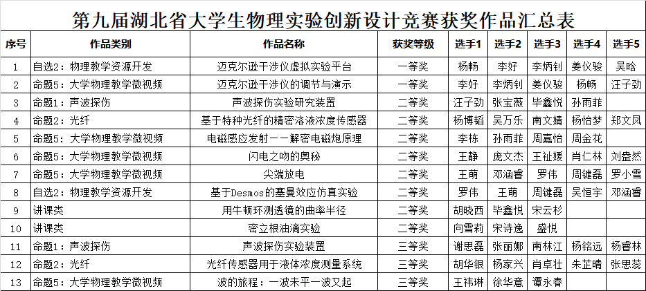 湖北省大学生物理实验创新设计竞赛为湖北省高校师生提供了一个物理实验创新交流的平台,助力培养大学生创新意识和实践能力、提高创新性人才培养质量。