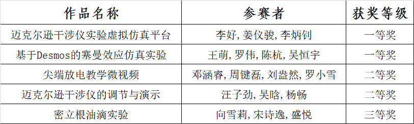 11月22日至25日在北京航天航空大学举行的第十届全国大学生物理实验竞赛(创新)决赛中,我校参赛队伍勇夺2项一等奖、2项二等奖、1项三等奖,创我校在此项赛事中的历史最佳成绩,同时我校获得优秀组织奖。