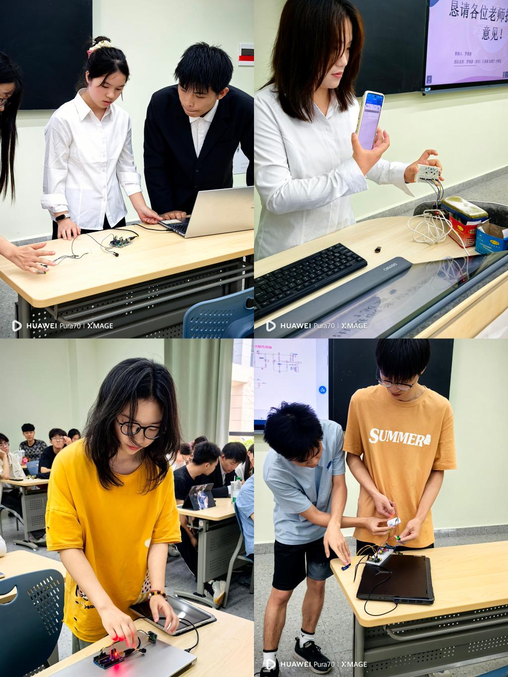 比赛过程中,各队伍依次汇报方案设计思路,并演示自己的项目作品。演示结束后,吴耀德老师对每组队伍进行了点评,并鼓励同学们要多动手实践,将想法付诸于行动。