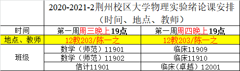 2020-2021-2荆州校区大学物理实验绪论课安排