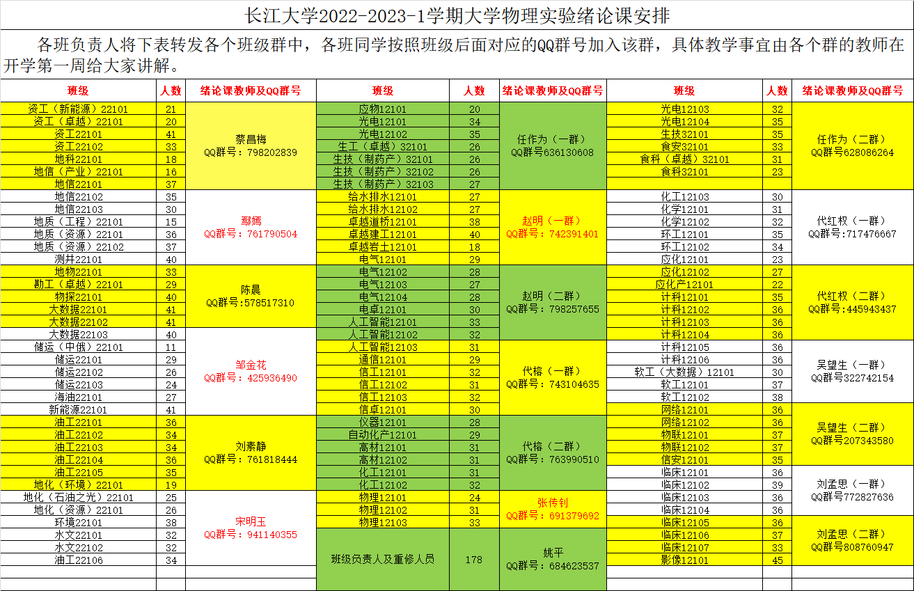 2022-2023-1荆州校区大物实验课表