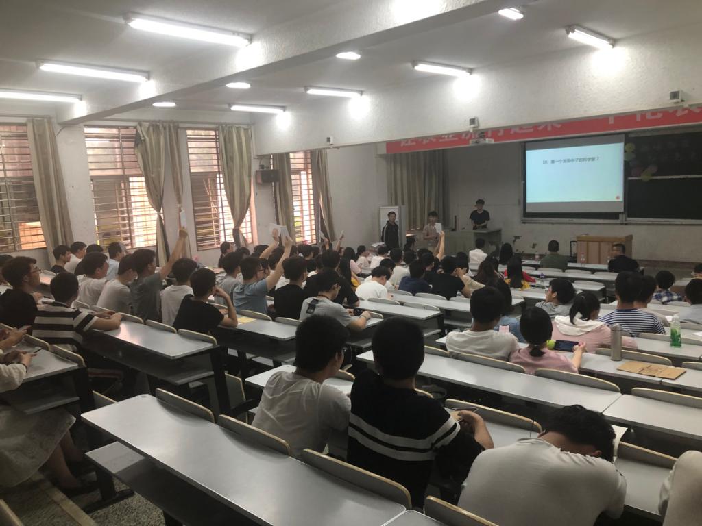 比赛刚刚开始,吕振乾学长用幽默风趣的语言为大家介绍了“物理学四大神兽”,并由此揭晓了本次竞赛的第一个环节—基础知识, 以四人为一队,选择题库,轮流答题的形式进行。比赛中,各个小组的选手们精神饱满,冷静思考,认真作答。比赛现场气氛紧张,一触即发。经过激烈的角逐,赵博文带领的“众智成城队”在第一个环节获得了领先地位。