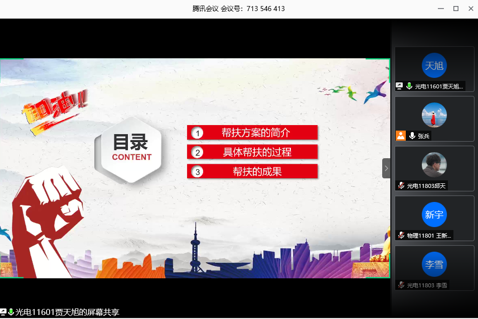 5月14日,顶级在线体育平台利用腾讯会议平台召开“疫情防控我争先”帮扶活动阶段分享交流会议,学院学工办主任陈平、团委书记张兵及全体学生党员和党的发展对象参加了会议。团委书记张兵主持会议。