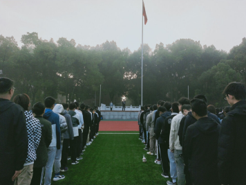 7点整,国旗护卫队整齐划一,踏着铿锵有力的步伐,将国旗护送到升旗台。伴随着国歌威武雄壮的旋律,升旗手振臂一挥,五星红旗迎风展开。全体人员肃立,向鲜红的五星红旗行庄严的注目礼,齐唱国歌,表达对祖国的无限热爱与祝福。简约却不失隆重的升旗仪式,让每一位学生对党有了更深的理解,也为我们日益强大的祖国感到无比自豪。