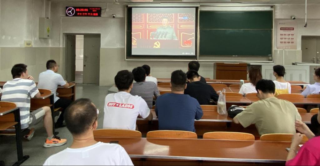 (通讯员  陈平 石峻娜)7月1日上午8时,庆祝中国共产党成立100周年大会在北京天安门广场隆重举行。我院全体在校研究生在主教108教室观看了大会直播。