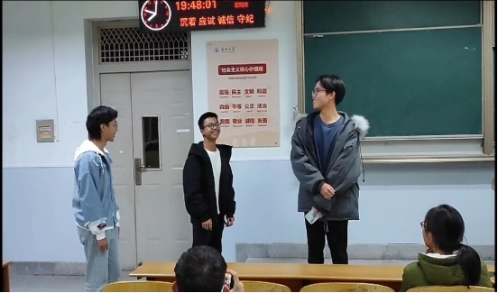 光电12103班与物理12101班通过情景剧模拟,设置常见的5个导致学生心理出现问题的场景,让同学们进行补充表演,再共同协商解决方案。融参与性、趣味性于一体,让同学们在热情高涨的氛围中,发现心理健康问题,并提高解决心理健康问题的能力。