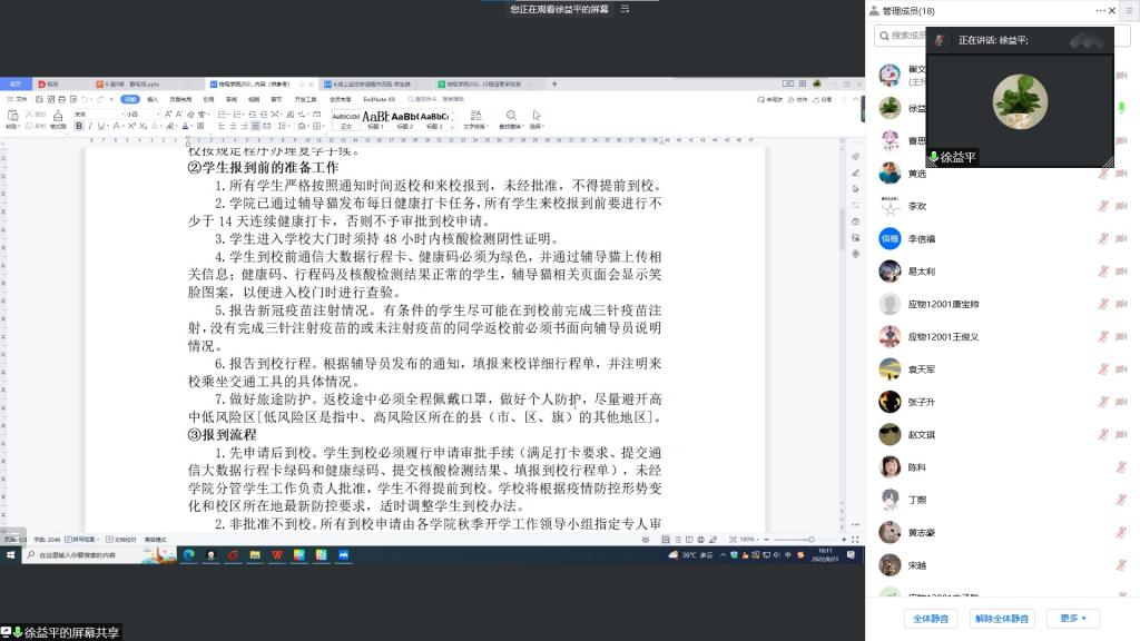 新的学期即将开始,为保障秋季开学工作的顺利进行,确保同学们平稳有序、安全返校报到。8月23日,物理与光电工程学院召开班主任会议,组织辅导员、班主任认真学习学校文件通知和国内疫情防控政策内容,会上要求全员精准传达精神,扎实落实,全力做好秋季开学学生返校报到工作。学院党委书记杨鑫、副书记崔月政、副院长肖循参加了会议。