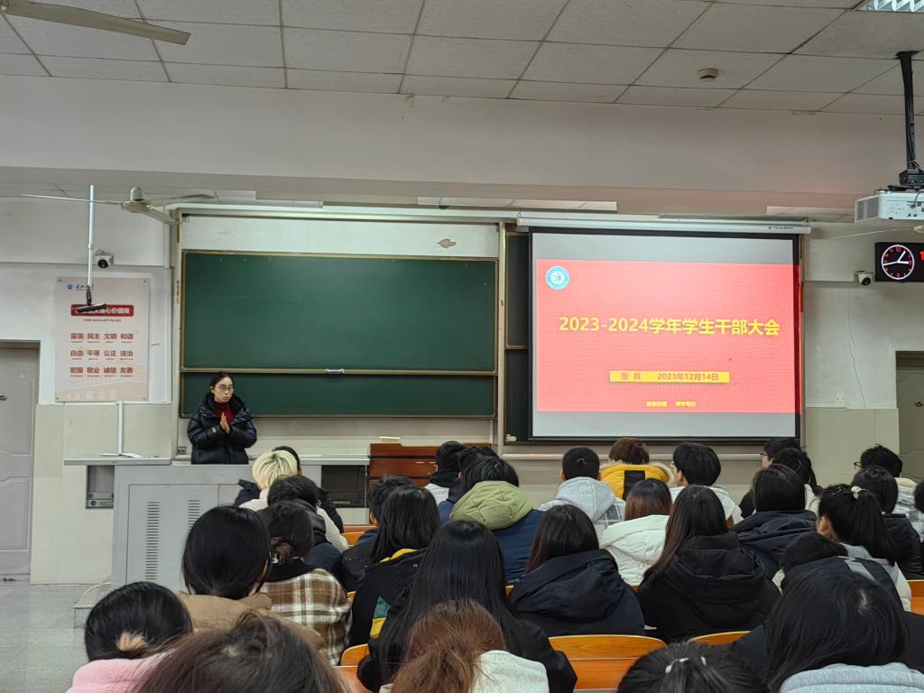 (通讯员/彭雨轩 摄影/王颖萱)为进一步加强学生干部队伍建设,提高服务师生能力。12月14日下午三点,顶级在线体育平台在主教107教室召开2023-2024学年学生干部大会,学院党委副书记王宁、全体专兼职辅导员及全体学生干部参会。