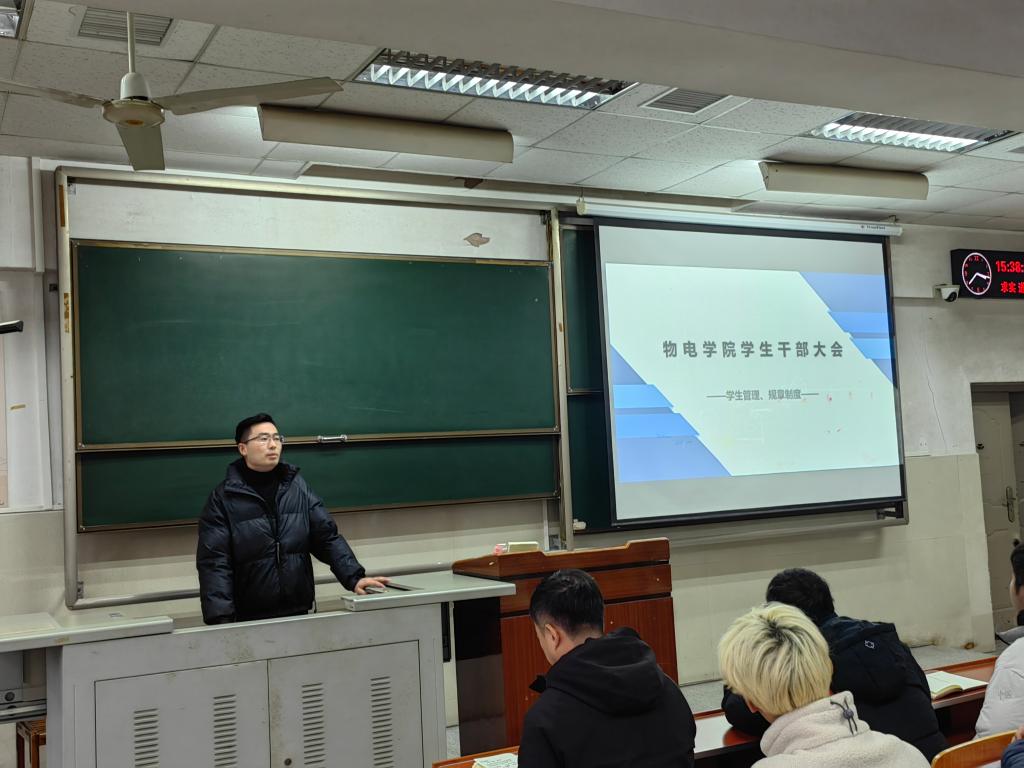 会议第二项,由朱帅老师介绍学生管理规章制度。首先,朱帅老师着重强调了防诈骗安全问题。其次,临近考试周,朱帅老师强调了务必诚信考试。同时,他重申学生请销假办法、课堂管理办法、在校禁酒规定及规范每日生活制度。