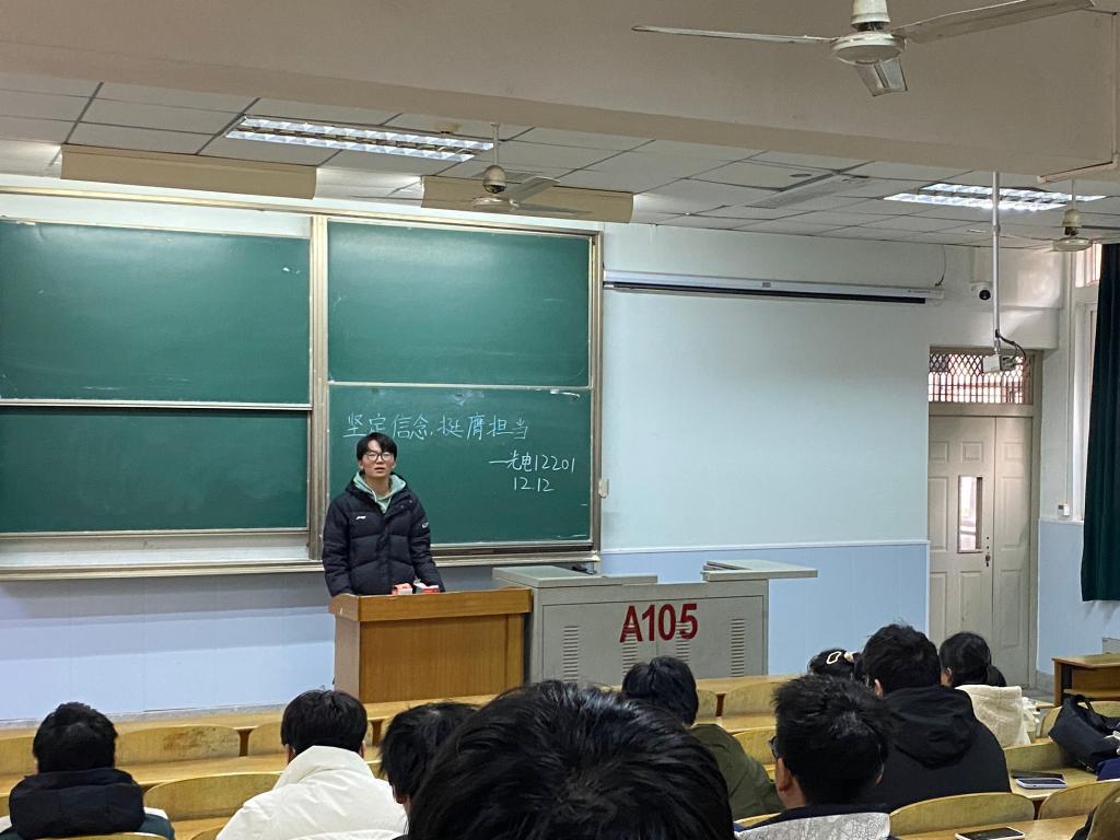 在12月主题团会活动展开同时,青马班组建了一支由省、校、院三级“青马工程”培训学员组成的“青马工程”宣讲队,并组织各学员开展“坚定信念,挺膺担当”主题宣讲活动。青马学员坚持读原著、学原文、悟原理,分小组组织开展集体研讨和备课,深入学院班级、学生社团及各学院学生会系统筹基层一线进行宣讲。