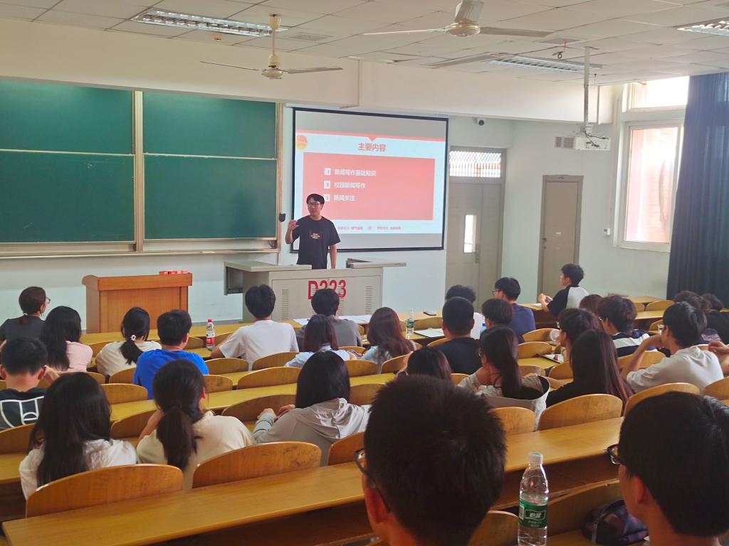 (通讯员/彭雨轩 摄影/郭树婷 于晓洋)为了提升学生干部在新闻宣传工作中的专业能力和实践能力,顶级在线体育平台于6月6日下午四点在13教D233教室开展学生干部新闻宣传工作专题培训会。本次培训会邀请了校团委组宣部学生负责人陈兴旺主讲,顶级在线体育平台学生会、研究生会、青支队、远方支教队、物理科普团、天文爱好者协会和口琴协会代表参会。