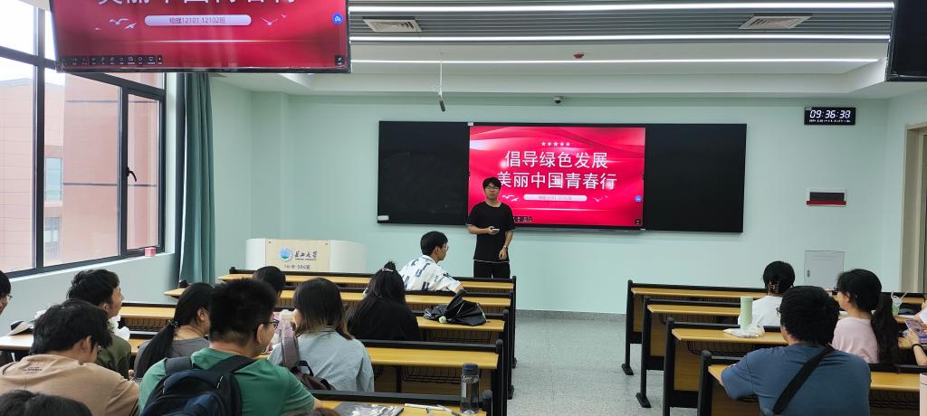 各团支部从垃圾分类、勤俭节约、绿色出行、无废校园、限塑减塑、光盘行动等方面开展主题实践活动,引导青年学生积极成为环境保护的志愿者、实践者和环保行动的宣传者和推动者。深入学习宣传贯彻习近平生态文明思想,引导全社会牢固树立和践行绿水青山就是金山银山的理念,动员社会各界积极投身建设美丽中国、实现人与自然和谐共生的现代化的伟大实践。