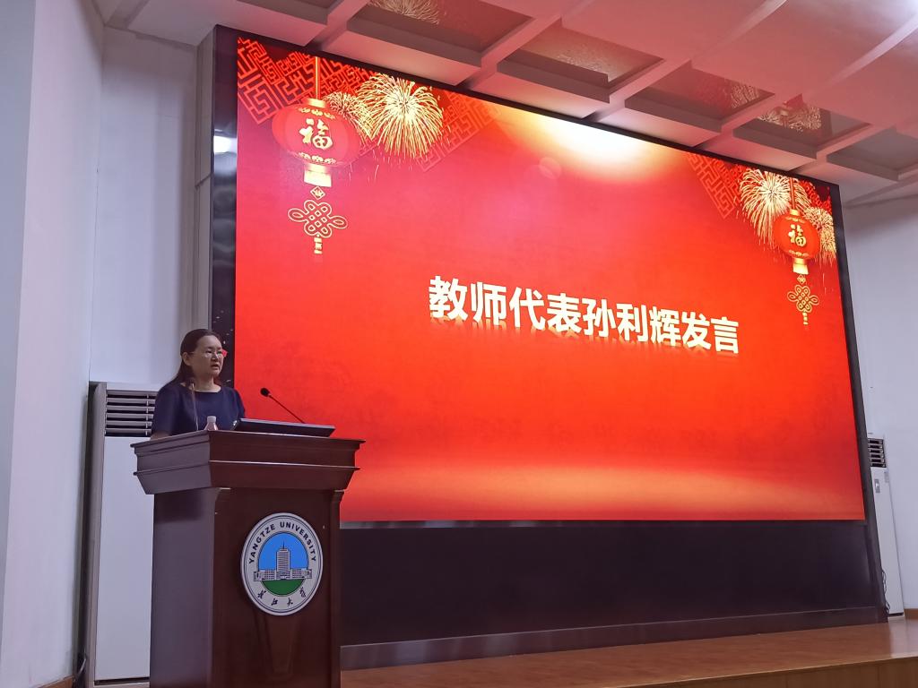 “戮力同心,奋楫笃行。”孙利辉作为教师代表,向新生们提出三点希望:一是做追光青年,不服输不怕苦,心存感恩、真诚善良;二是勇敢面对困难,不断探索未知,拓宽视野,丰富知识,全面提升自我;三是多与老师交流,相互促进、共同成长。