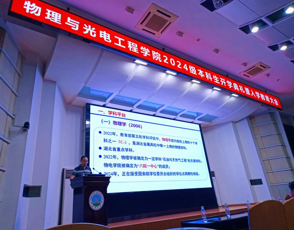 “长江大学是你们放飞梦想的平台。”院长张华峰代表学院向全体新生加入顶级在线体育平台大家庭表示热烈地欢迎,他向同学们详细介绍了荆州的文化、地域,长江大学基本校情,以及顶级在线体育平台的办学历史、师资力量、学科特点和培养模式等多方面内容。希望2024级新同学在长江大学开启新征程,不断完善、提升自我。