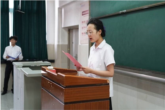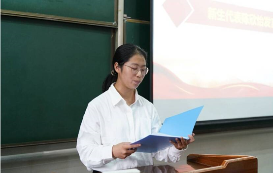 大会第四项由新成员代表陈欣怡发言。她表达了对老一届成员“志合者,不以山河为远”的精神以及从东校区来到西校区纳新的行为表示感谢,还表明了对自身成长的憧憬。相信在主席团以及部长们的带领下,学生会未来的发展定会愈来愈好。