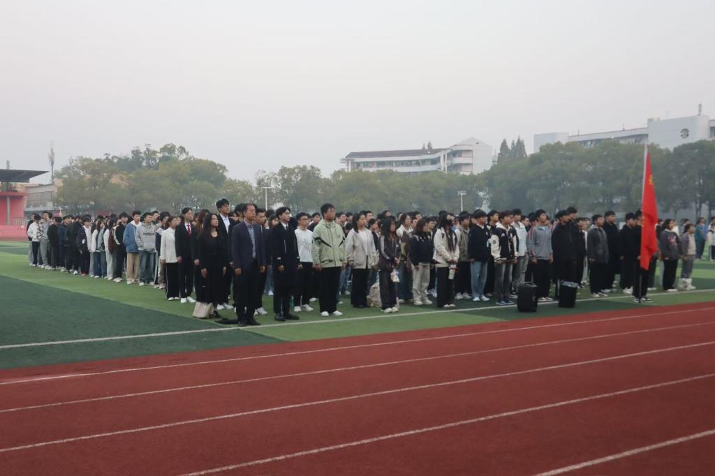 11月11日早上7时,物理与光电工程学院于西校区田径场举行“弘扬科学家精神,涵养优良学风”主题升旗仪式。学院党委副书记王宁、辅导员周港及全体2024级本科生参加了本次升旗仪式。
