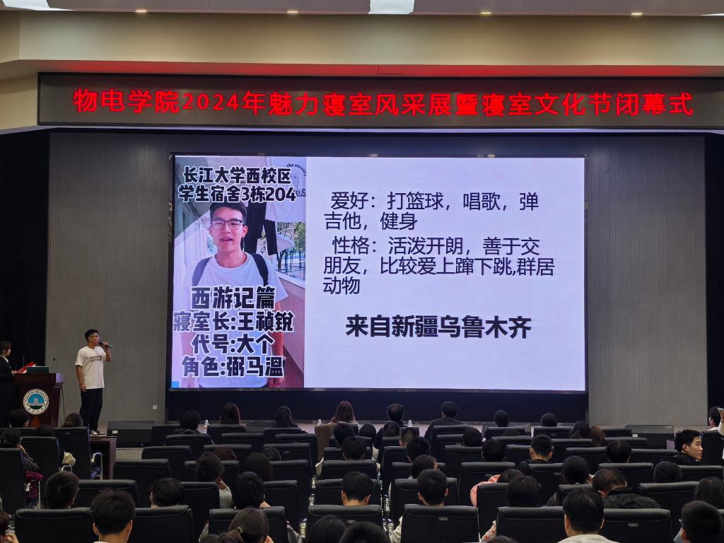 活动分为魅力寝室风采展和寝室文化节颁奖两个环节,十位寝室代表依次上台展示作品。他们用心创作视频,精心制作PPT展示寝室生活和青春风采。其中,来自大三年级的23#b323寝室,展示了良好寝室文化带来的成果。寝室四人中,有两名党员,一名预备党员,一名入党积极分子。在良好的学习氛围的熏陶下,四人互励共勉,成绩优异,绩点均在专业前二十内。