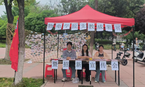 “群山回响,播种星光。”2025年4月22日至23日,物理与光电工程学院远方支教队支教成果展暨招新宣传活动分别于东校区13教前、西校区6教前展开,往届支教队员作为亲历者向前来咨询的同学分享各自的支教经历和成长感悟,向大家展示过去一年的支教成果,同时面向全校招募志同道合的支教志愿者。