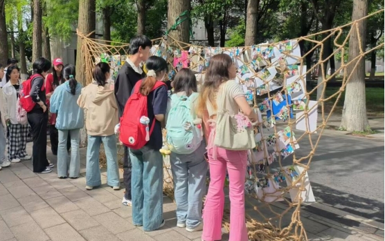 活动现场,摊位展览上满是老师与孩子们的亲昵合影、物资捐赠、趣味活动等照片,以及孩子们精心创作的手工绘画作品,照片里灿烂的笑脸和作品明亮的色彩,直观地为同学们讲述了支教生活的点滴美好。面对同学们的好奇与提问,队员们都耐心解答、细致讲解,充分展现了支教队热情、友爱的精神面貌。