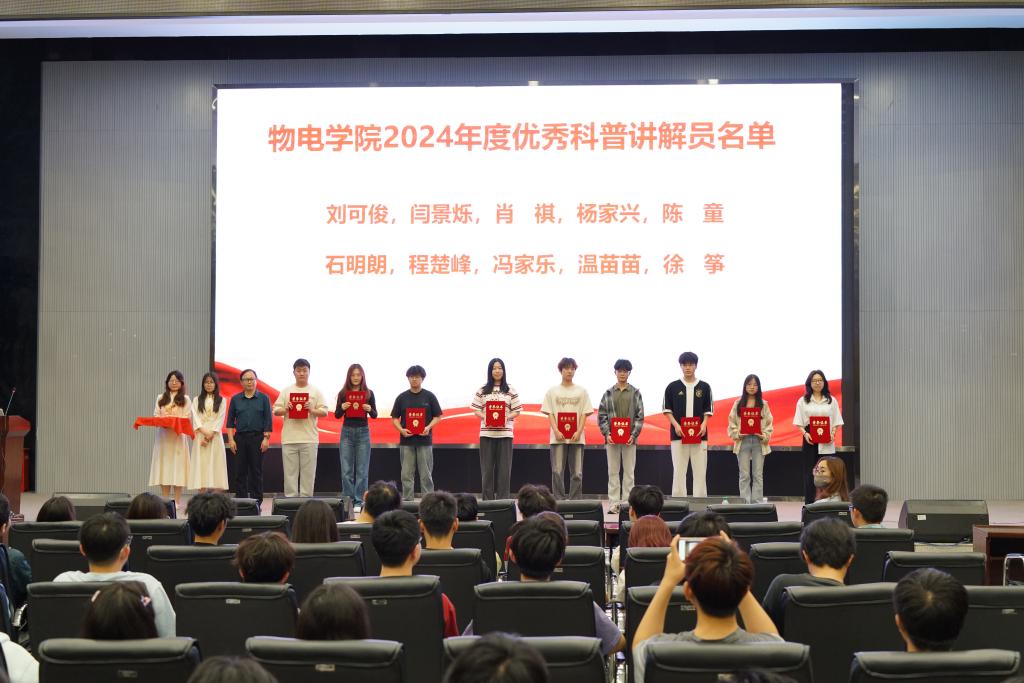 习近平总书记强调“科技创新、科学普及是实现创新发展的两翼,要把科学普及放在与科技创新同等重要的位置”,顶级在线体育平台党委高度重视物理科普工作,去年第四届“求真”科技节开幕式上成立了“物理科普团”。科普团在过去的一年里开展了数次科普实践活动,涌现出一批表现优秀的科普讲解员。在此次第五届“求真”科技节开幕式上,学院为10名优秀科普讲解员颁发荣誉证书。
