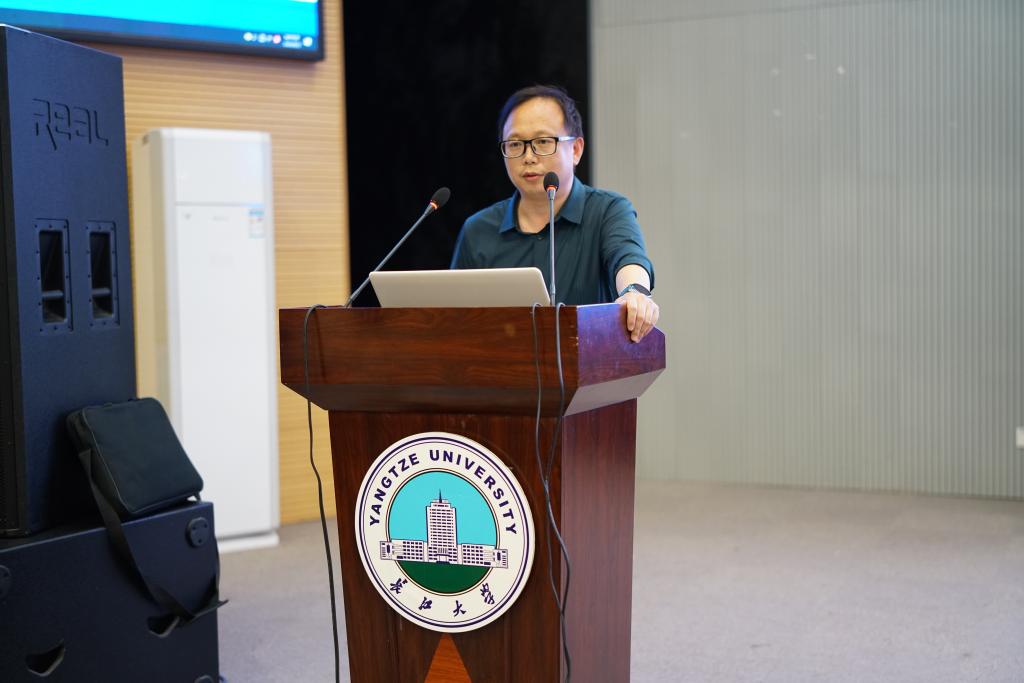 作为学院学生竞赛资深指导老师,姚平老师为大家做学科竞赛政策解读报告,针对学院需要重点关注的学科竞赛,他从学科竞赛等级、参赛要求、奖项设置以及学院获奖情况等方面详细分析了“全国大学生物理实验竞赛(B类)”、“全国大学生光电设计竞赛(B类)”、“科学实验展演汇演”、“司南杯量子计算编程挑战赛”这四项大赛的竞赛政策。为物电学子指出参与科创竞赛的清晰路径,激发起大家挑战自我、追逐科创梦想的无限热情。