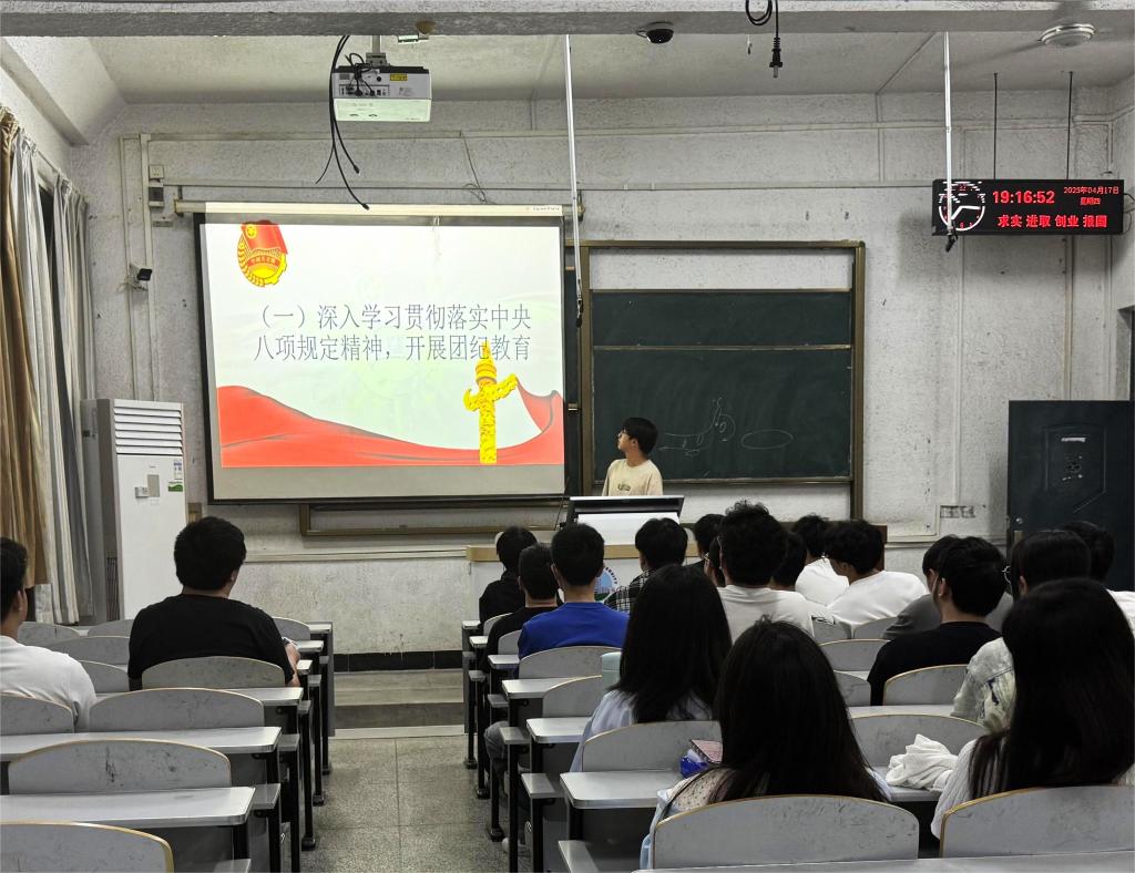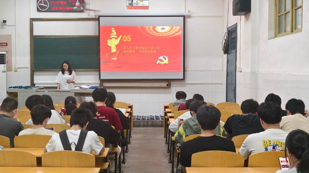 各团支部通过主题团日活动、学习研讨会等形式深入学习中央八项规定与《中国共产主义青年团纪律处分条例(试行)》,教育引导广大青年学生严格落实中央八项规定精神,严守团员纪律,以更加饱满的精神状态投入到学习生活当中。