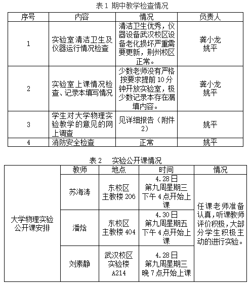 本学期大学物理实验中心授课的对象主要是2019和2020级理工农医专业本科的学生,涉及53个班,包括荆州校区和武汉校区总计学生1693人。根据实验中心的各项工作要求,具体情况如下: